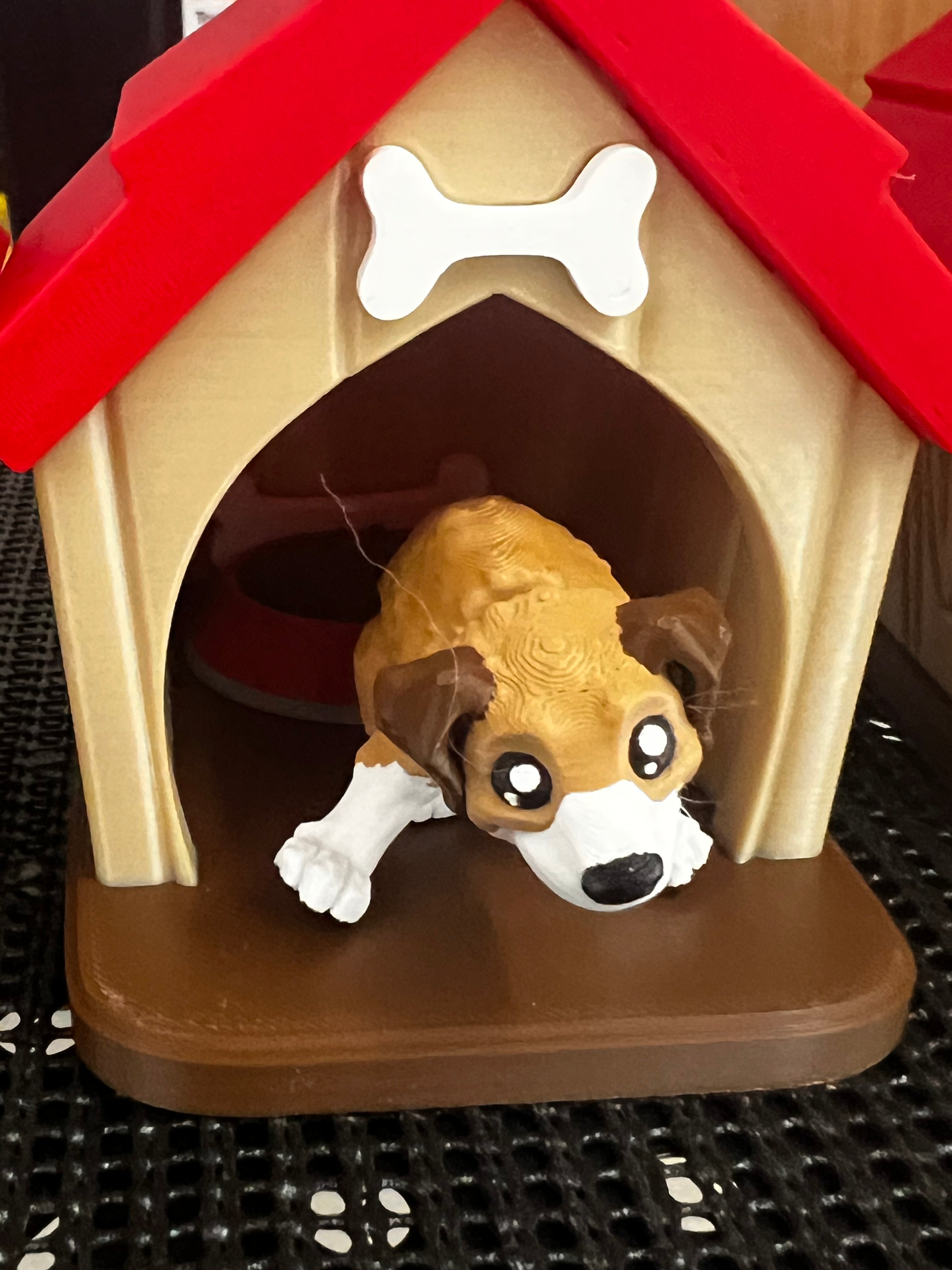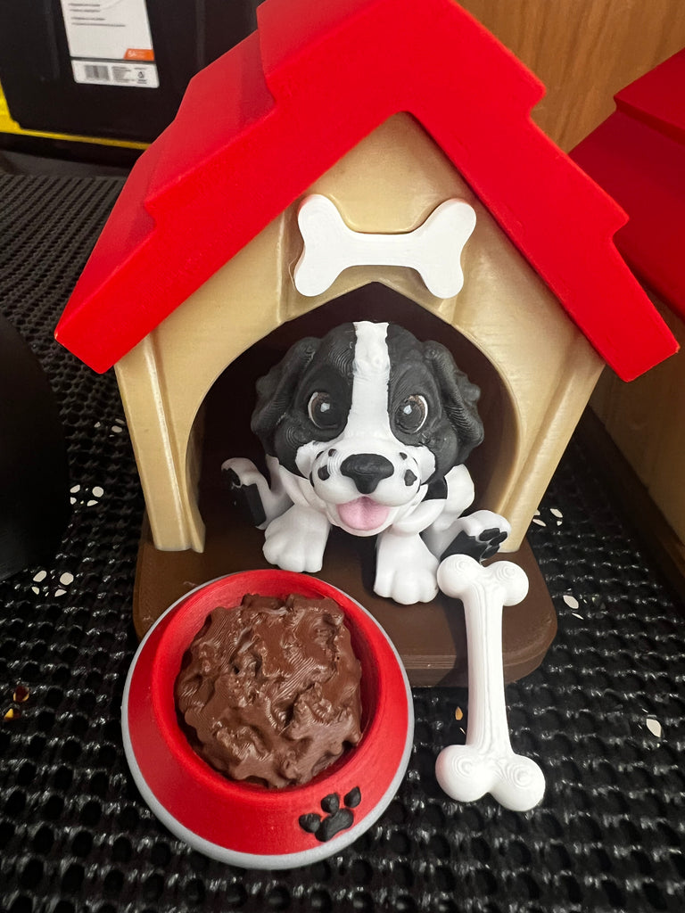 Give your favourite pup a cozy home! This adorable 3D printed dog house set comes with everything your mini-pet needs: a bone, a bowl of kibble, and your choice of dog breed.